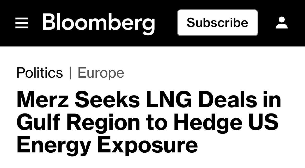Германия стремится избавиться от энергетической зависимости от США, — констатирует BloombergСегодня около 94% СПГ Германия импортирует из США. Администрация Трампа уже использовала энергоресурсы в качестве рычага давления в переговорах о тарифах