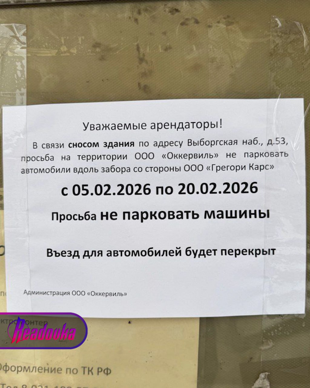 На Выборгской набережной в Питере на историческом здании появилось объявление о его скорейшем сносе. Здание построено в 1914 году, еще до революции, а значит, сносить его по законам нашей страны нельзя. Нынешние владельцы, ООО Грегори Карс, выкупили здание в 2021 году на торгах Российского аукционного дома за 114 млн. При этом в 2018 году сообщалось, что здание находится в границах охранных зон по местному законодательству о защите культурного наследия, то есть его снос запрещен.
