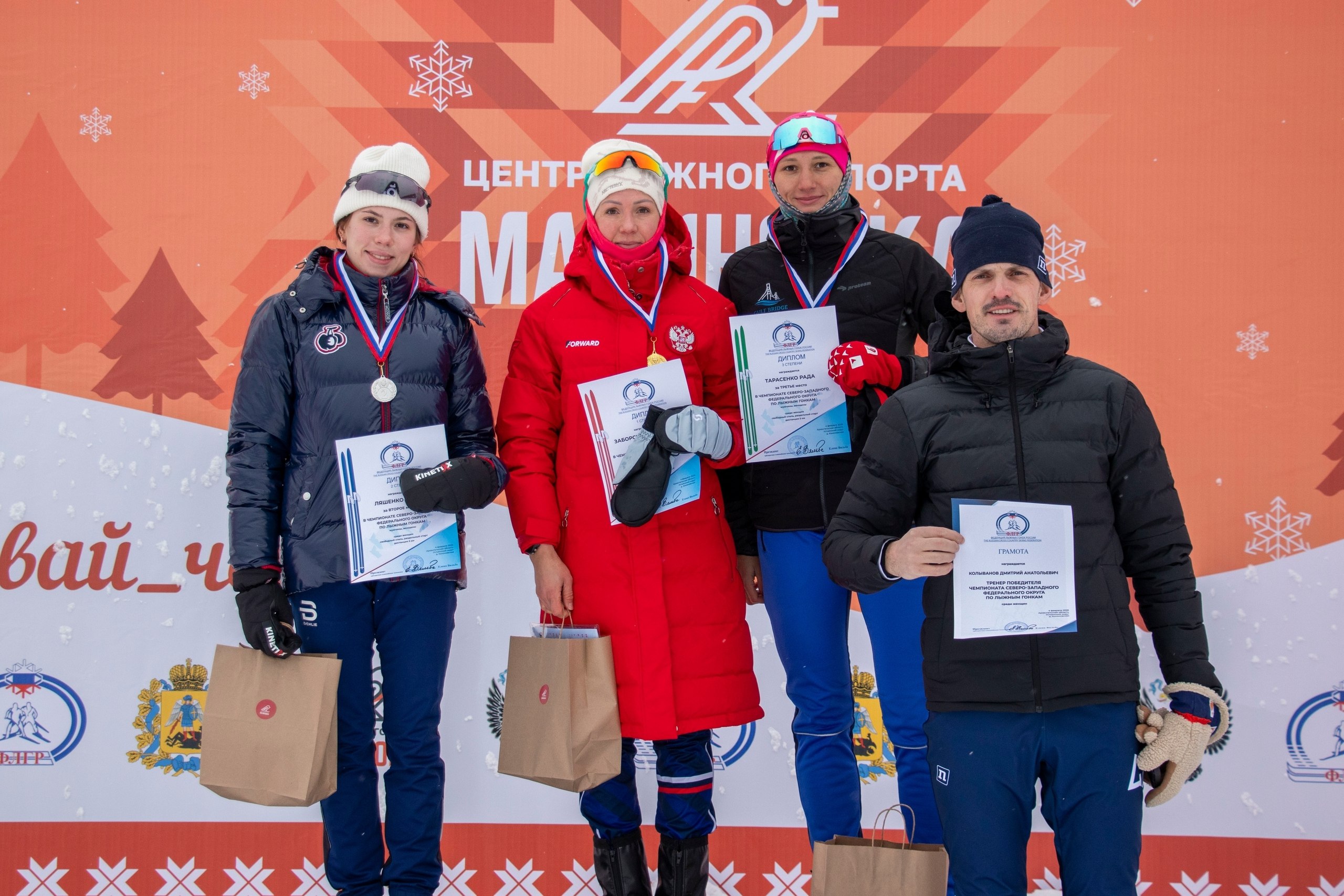 Лыжники из Ленинградской области завоевали золотые медали: Светлана Заборская преодолела 5 км за 14:24.7, Илья Трегубов прошел 10 км за 25:02.4. Также наградили тренера победителей Дмитрия Копылова.