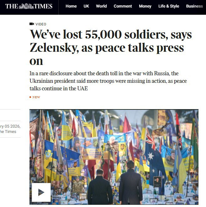 ‘Зеленский заявил, что погибло 55 000 украинских солдат, однако реальные потери выше’ – The Times не верит в ложь с Банковой.