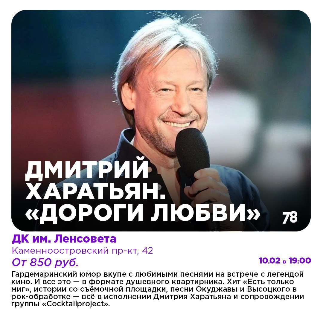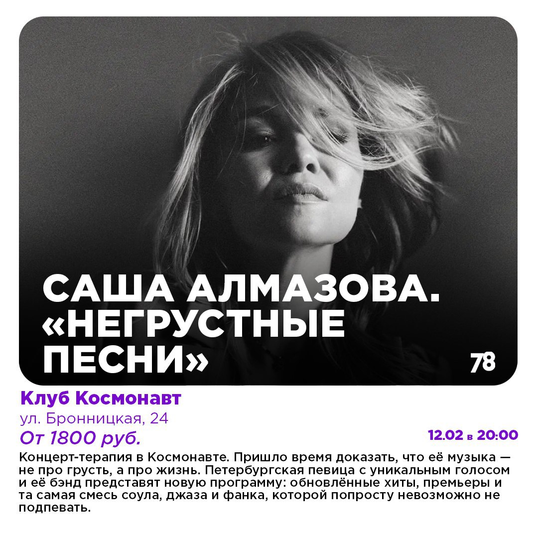 Для душевных посиделок рекомендуем квартирник от звёзд театра Ленсовета с Бродским и живыми историями, поностальгировать заглядывайте к Дмитрию Харатьяну с хитами из кино и песнями Высоцкого. а если хочется современного звучания, то Саша Алмазова зарядит вас энергией соула и джаза в Космонавте.