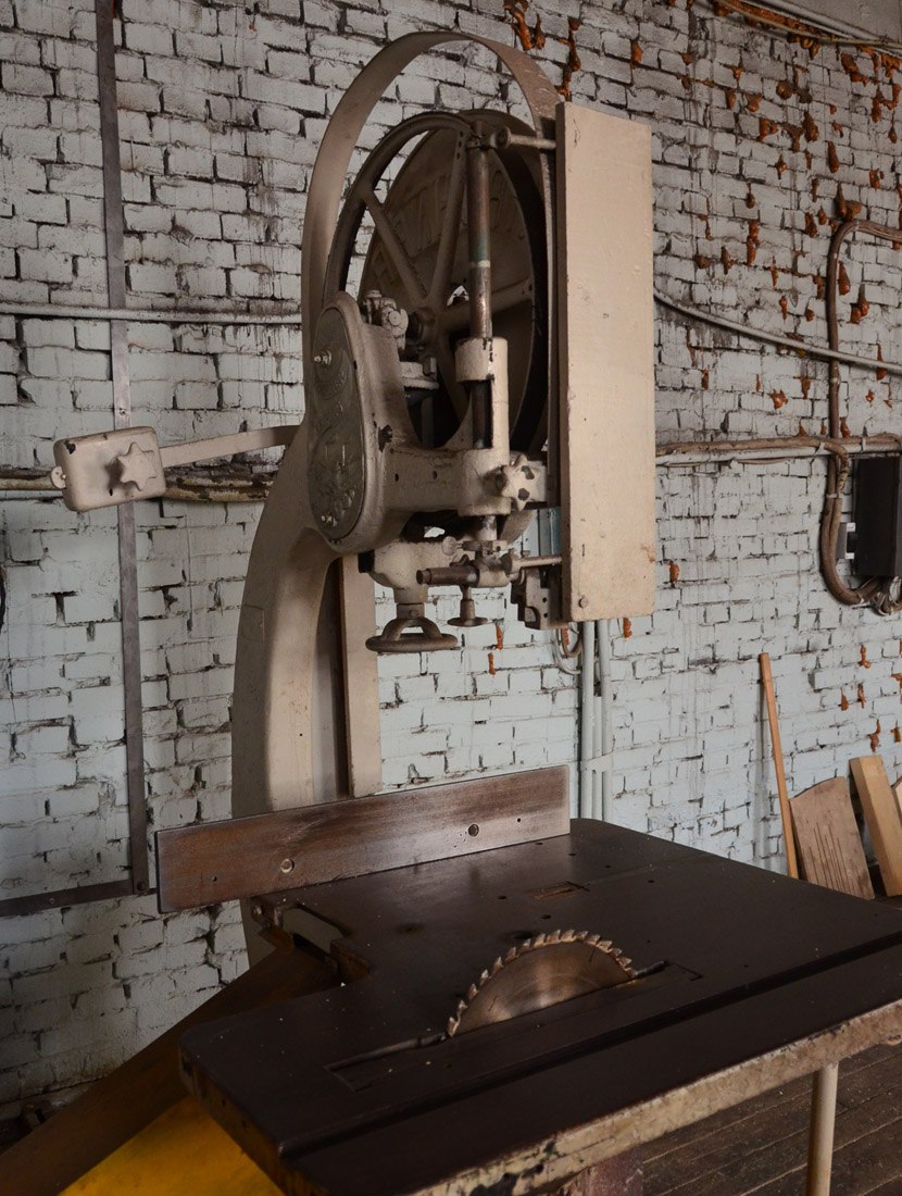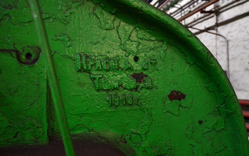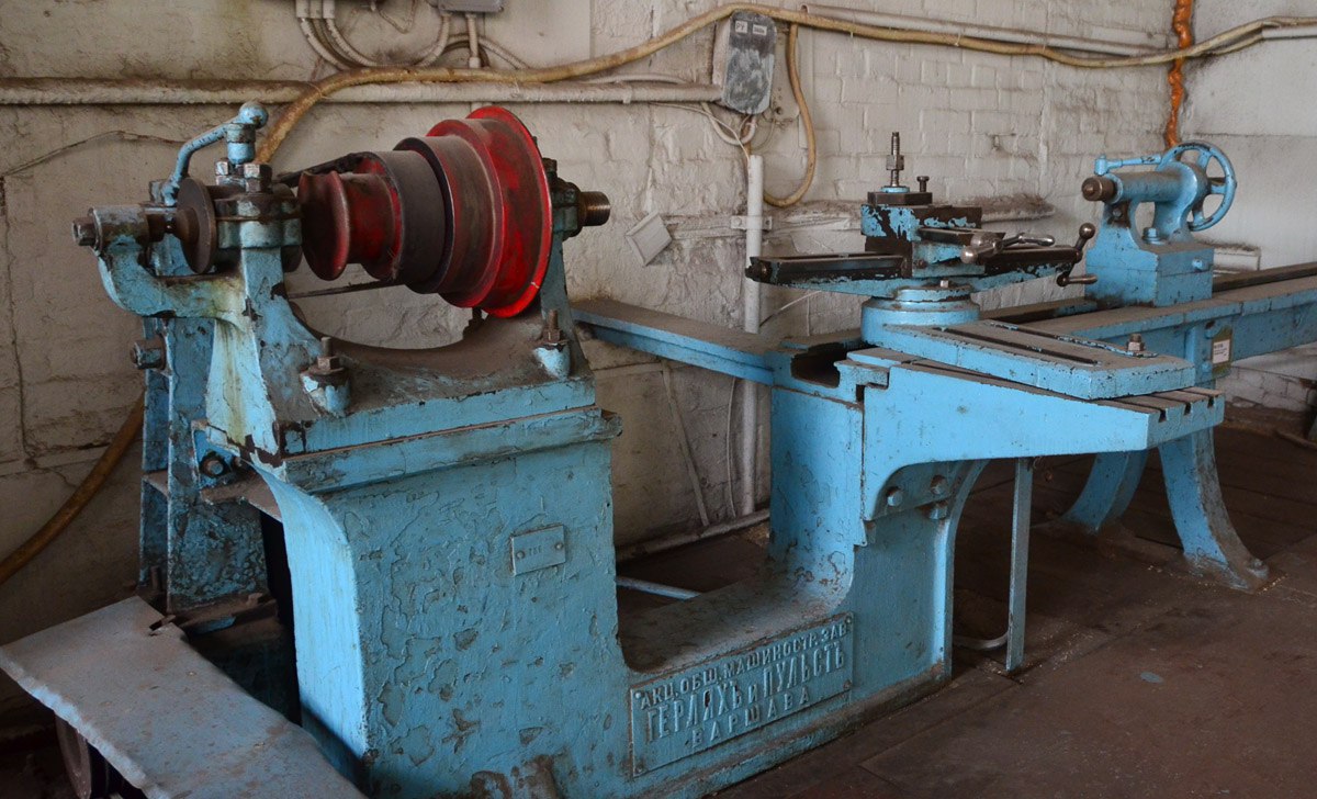 И мы пошли на деревообделочный участок. Первой мне показали ленточную пилу "Кирхнер Ляйпциг": "Поставка из Германии, 1911 год! Прекрасно пилит и через 105 лет. Простая, надежная". Затем подошёл рабочий участка, послушал наш диалог, и сказал: "Пойдёмте, я покажу самый ранний станок ЭВРЗ. Старше точно ничего нет". Мы пошли в угол цеха, и я чуть не упал от изумления, увидев на станине рельеф "Герляхъ и Пульстъ. Варшава". И шильдик - "1907". - "И что, работает?" - "Ну да. А что ему сделается? Токарный по дереву. Нагрузка очень умеренная, ресурс большой. И сегодня точит".