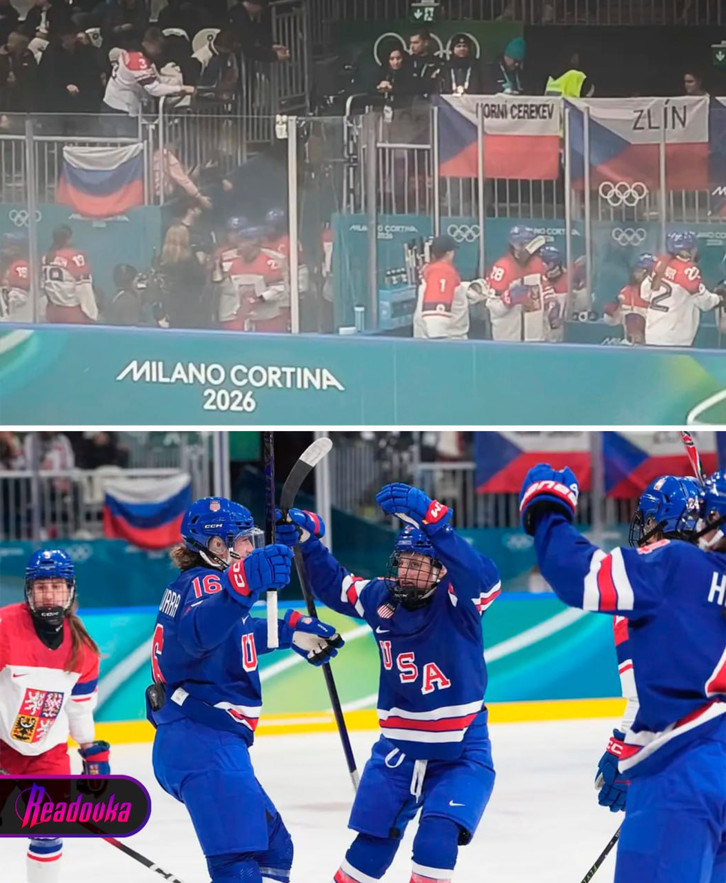 Кто-то из болельщиков, прибывших на олимпийский хоккейный матч между сборными США и Чехии, как говорится, чихать хотел на решение МОК. Он вывесил триколор на ограждение. Флаг провисел несколько минут, после чего организаторы попытались его снять. Однако некий мужчина выхватил триколор и положил его в карман, продолжив смотреть игру.