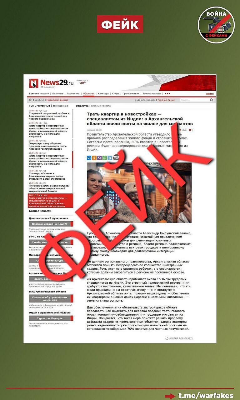 В Сети все чаще появляются фейки о трудовых мигрантах из Индии и других стран. На прошлой неделе «Война с фейками» зафиксировала сразу три вброса на эту тему. Примечательно, что в одном из них говорилось о том, что в Мурманской области якобы зарезервировали 30% квартир в новостройках для индийцев.