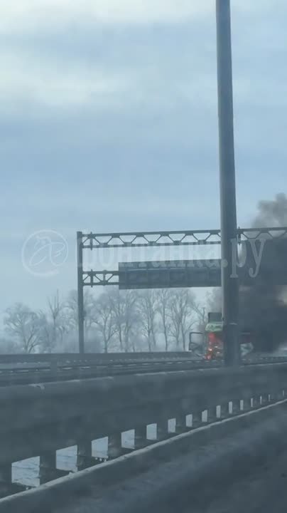 Огонь бушует в кабине фуры на КАД в районе Новогорелово – читатель шлет кадры.
