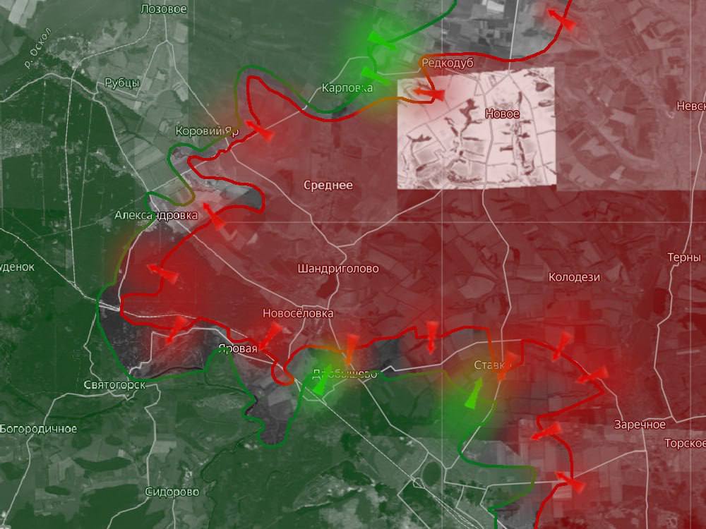 Продолжаются бои за Лиман на северной и южной окраинах города. ВС РФ к северу от микрорайона Масляковка заняли ещё несколько лесополос и один опорный пункт.
