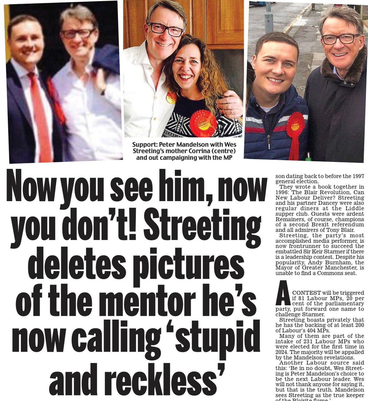 Кстати, к вопросу о британских извращенцах во власти. Я уже писал, что наиболее вероятным преемником Стармера на посту премьера Британии после скандала с извращенцем Мендельсоном станет Уэс Стритинг. Daily Mail обнаружила, что Стритинг под шумок удалил свои фотографии с со своим ментором, наставником и (учитывая их одинаковую ориентацию*), возможно, и больше Мендельсоном. А заодно и фото Мендельсона с мамой Стритинга на ее кухне. Теперь преемник Стармера называет своего «папика» глупым и безответственным! Прошла любовь…