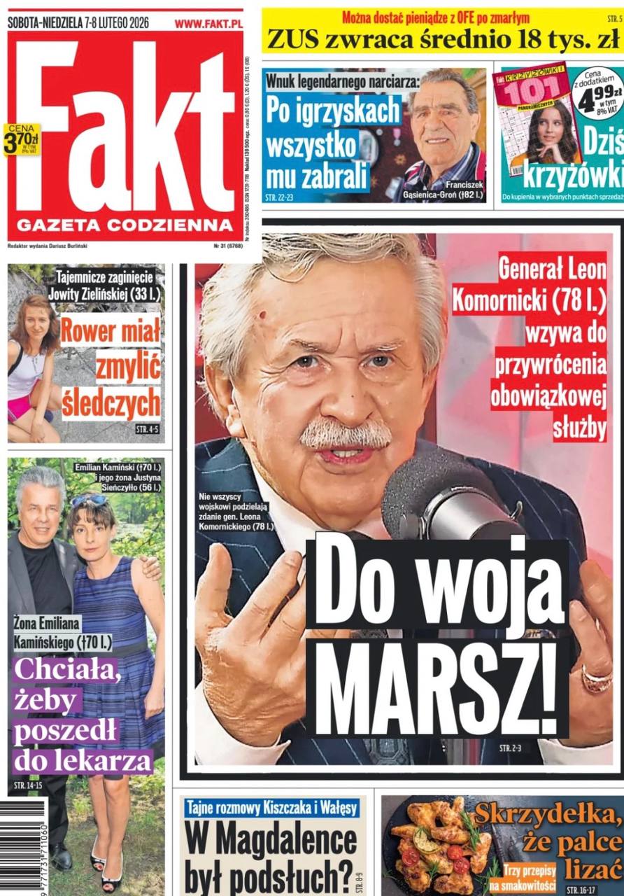 В Польше призывают вернуть обязательную воинскую службу, отмененную полтора десятилетия назад. Газета Fakt выносит на первую полосу призыв по этому поводу 78-летнего отставного генерала Леона Коморницкого, бывшего заместителя начальника Генштаба.