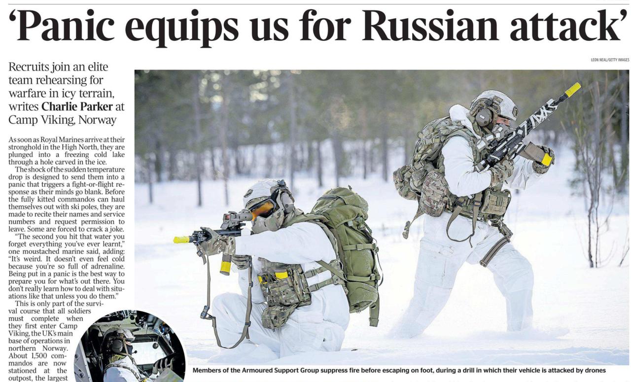 Британская The Times публикует сегодня репортаж с норвежской военной базы о тренировке британских военных. Заголовок впечатляет: «Паника вооружает нас против российской атаки».