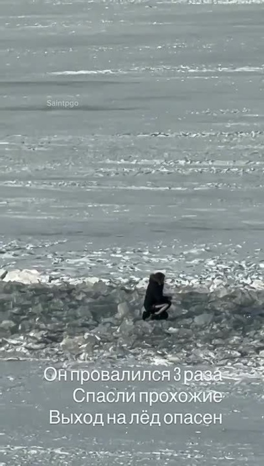 Напротив Стрелки Васильевского острова мужчина едва не провалился в полынью. И так три (!!!) раза. Его спасли прохожие.