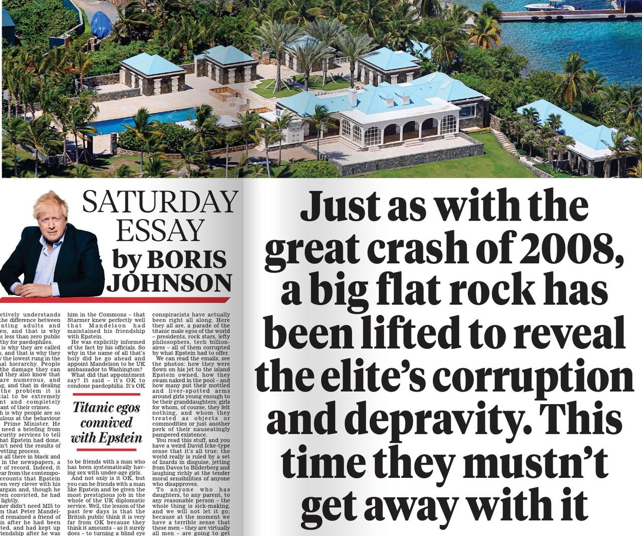 Да-да, тот самый британский прохиндей, который и не скрывает, что пытается монетирзировать все, к чему прикасается, сегодня на целый разворот Daily Mail публикует статью под громоздким заголовком: «Как и во время краха 2008 года, большой пласт сдвинулся, чтобы обнажить коррупцию и развращенность элиты. На этот раз им не должно сойти это с рук».