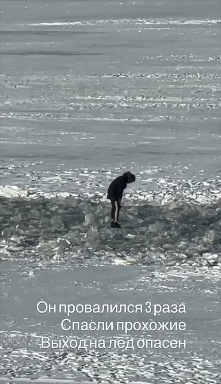 Мужчина трижды провалился под лёд на Неве. Судя по кадрам, он попытался пересечь полосу колотого льда. На помощь подоспели прохожие.