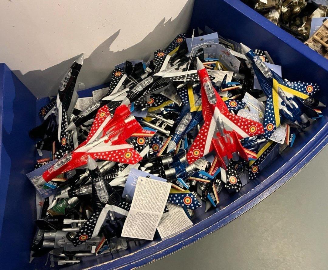 Тут такое дело, в одном из буржуйских западных музеев проводят акцию для посетителей. Раздают сувенирные модели лучших в мире самолетов.А лучшими самолетами в мире как известно являются самолеты марки Су и МиГ. Руководство музея видимо так же считают. Стоят корзины с Су-34 и МиГ-29.