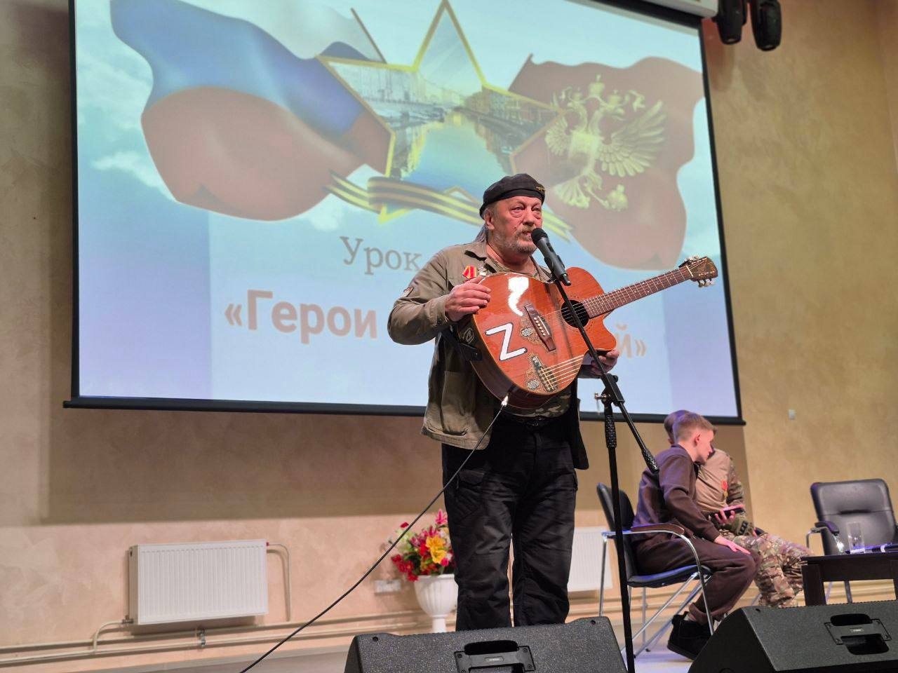 Он выступил с концертом перед кадетами, общался, рассказывал истории из своей волонтерской жизни. Кадеты проявляли интерес к мероприятию и задавали вопросы.