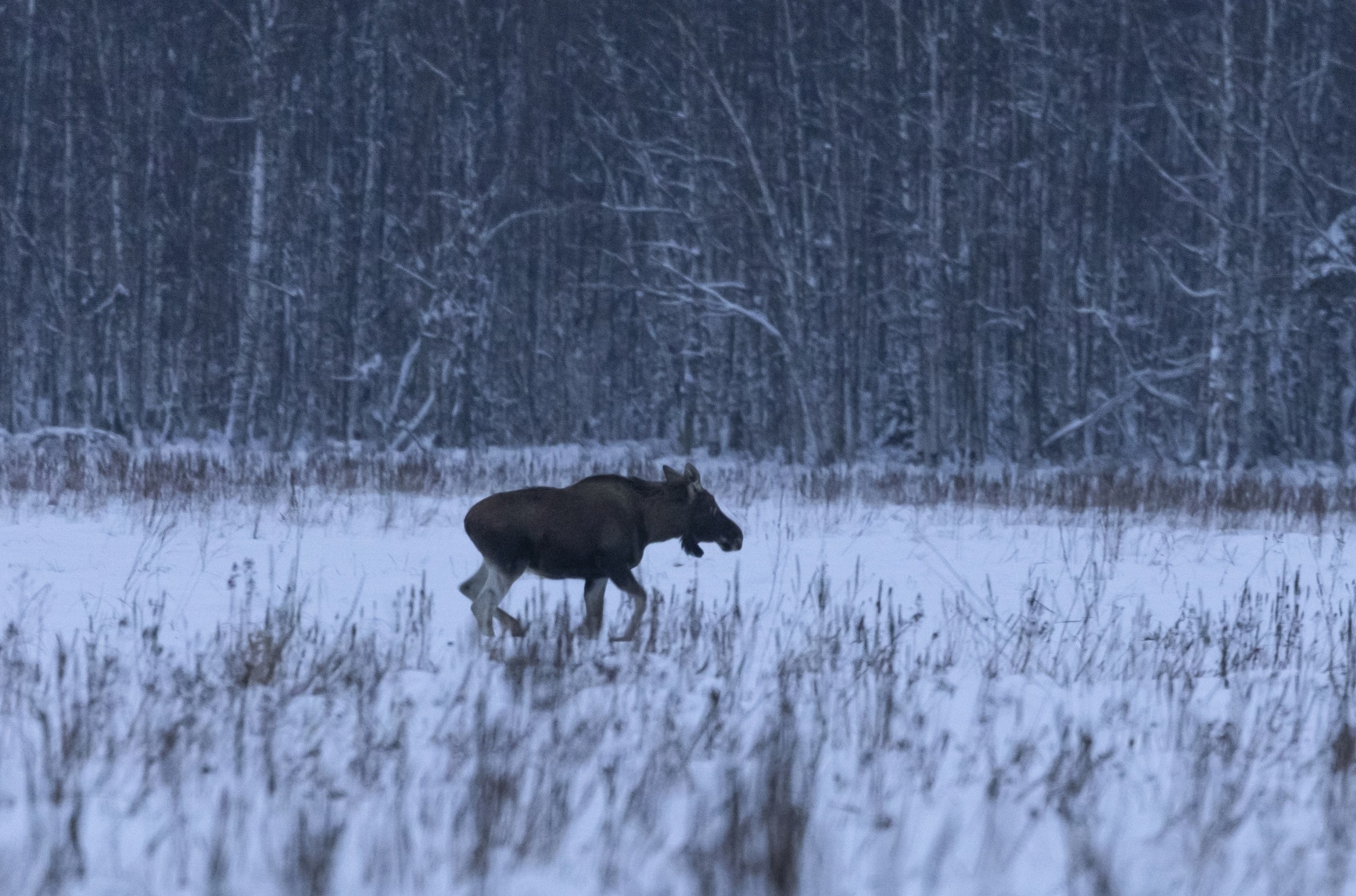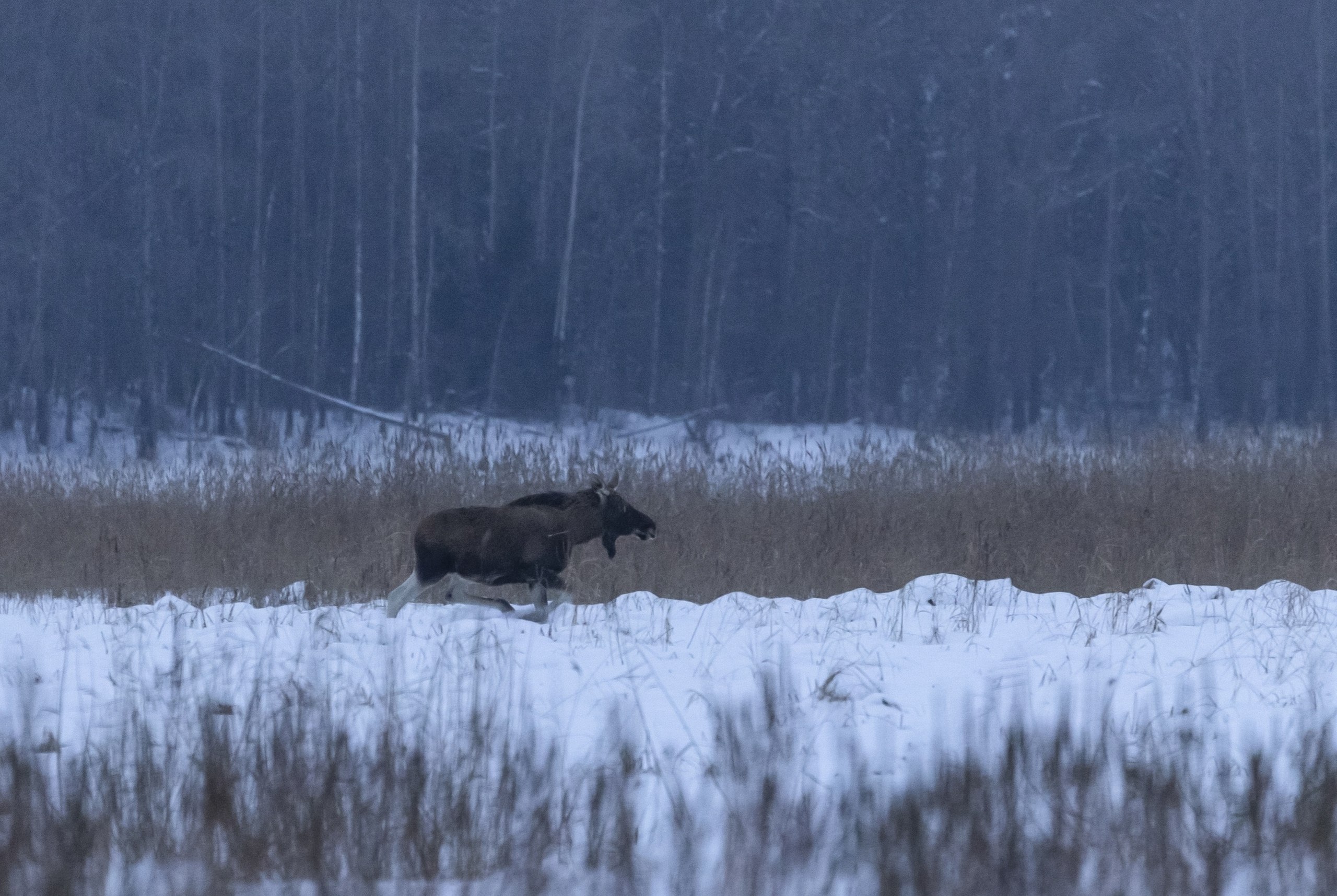 В морозы у хищников возрастает аппетит, что сказывается на поведении их потенциальной добычи. Растерявшие свой боевой настрой лоси сбросили рога и сбились в компании для безопасности. Они постоянно друг с другом перекликаются множеством различных звуков. Самцов можно узнать по крепкому телосложению и большой бороде. У самок она заметно меньше.
