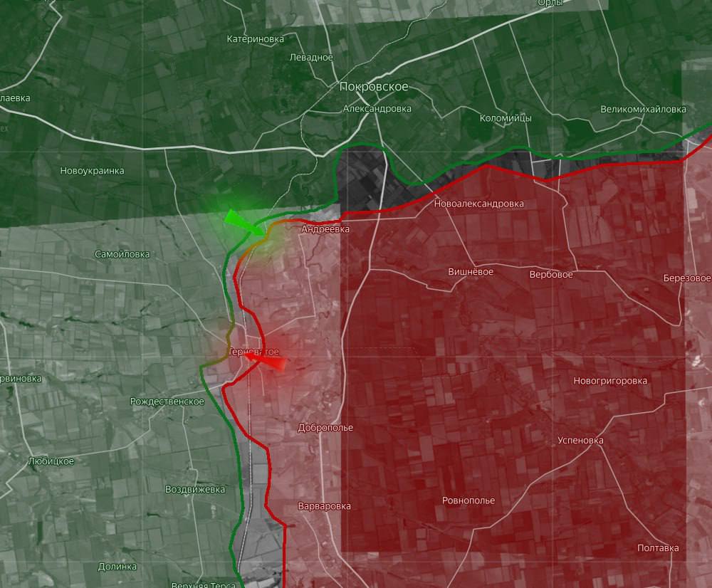 На южном фланге направления российские войска, продвигаясь со стороны Святопетровки, оттеснили Силы обороны из окрестностей нескольких прудов на подступах к Цветковому и достигли окраин села.