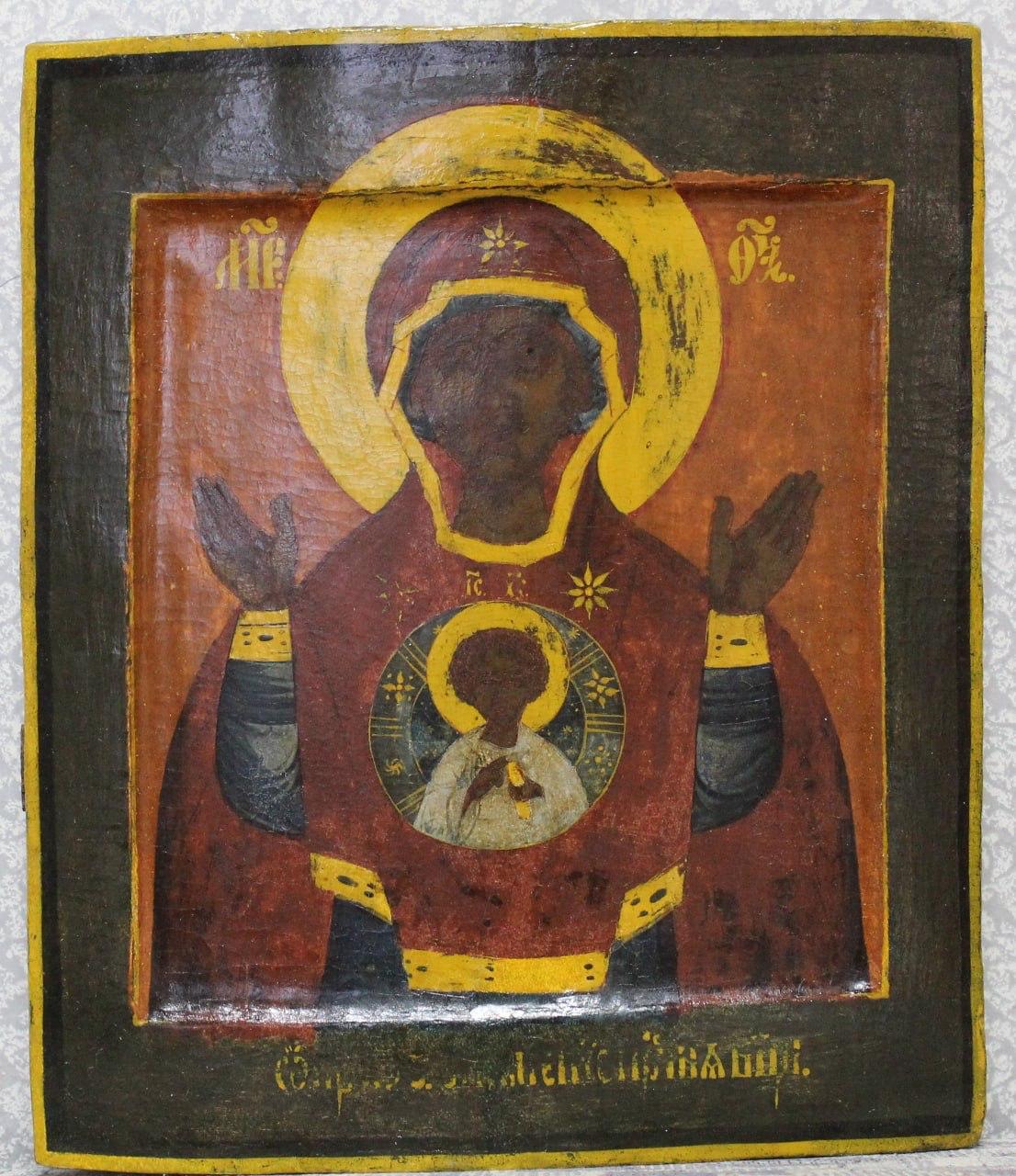 Специалисты также датировали икону Знамение XVII веком, состарив ее на 100 лет. На образе, считавшемся изображением Сергия Радонежского, проявилась надпись, идентифицирующая святого как преподобного Антония Дымского.