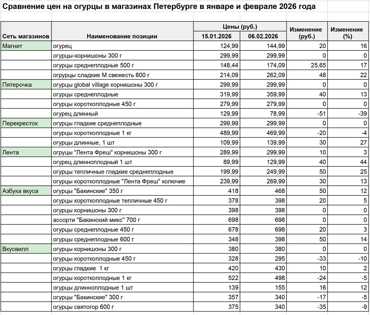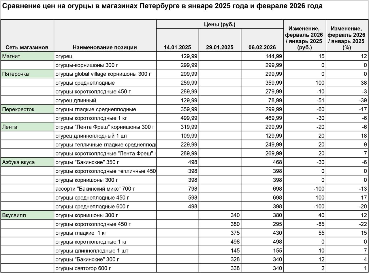 «Фонтанка», как и обещала, продолжает наблюдение. С середины января в нашем небольшом списке 15 позиций из 28 подорожали, 6 подешевели и на 7 цены не изменились. Самый большой рост — 50 рублей — в «Ленте» и «Азбуке вкуса». В процентах на короткой дистанции тоже лидирует «Лента». Во второй таблице — изменения примерно за год.