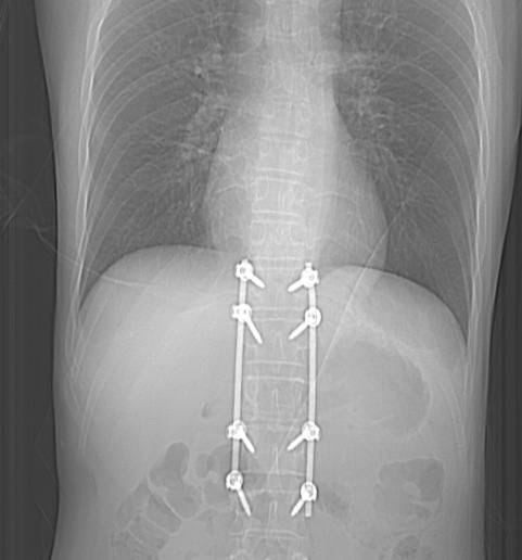 Медики также обнаружили и устранили у пациента повреждения желчевыводящих путей. Из-за этого пострадавшему удалили желчны пузырь и провели дренирование холедоха. Затем пострадавшему потребовалась операция на позвоночнике с транспедикулярной фиксацией.