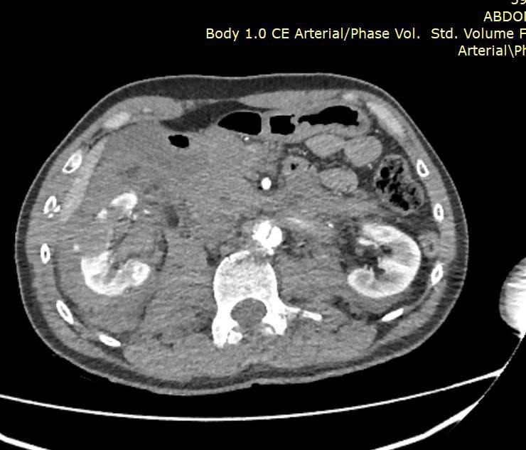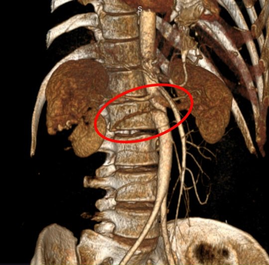 После госпитализации у пациента обнаружили массивную забрюшинную гематому, разрыв инфраренального отдела брюшной аорты, повреждение правой почки и поджелудочной железы.
