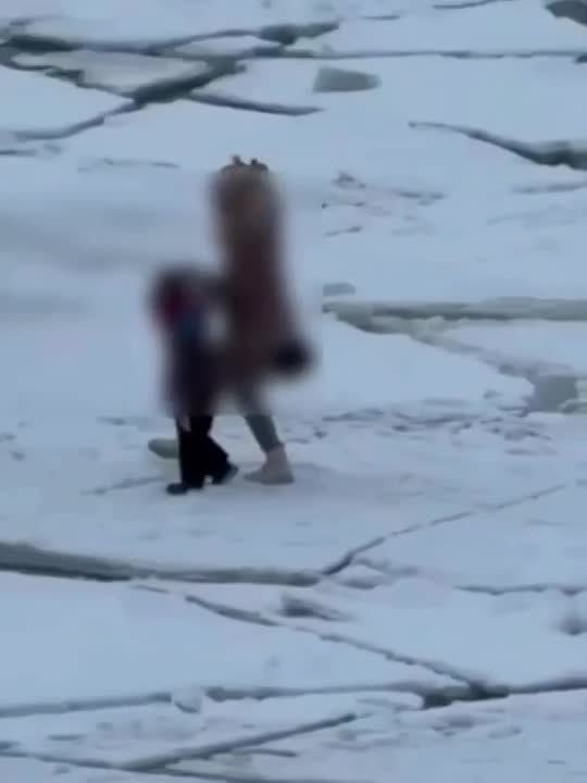 Опасный "аттракцион" на Неве: мама с маленьким сыном вышла гулять по едва ставшему льду после прохода ледокола