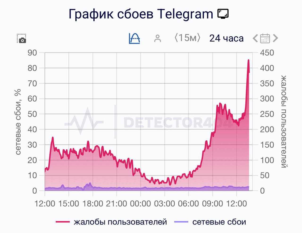 Количество жалоб на работу родной тележки резко скакнуло с 11 утра — на графике в сервисе Downdetector. В связи с последними новостями об ограничении работы Telegram ни на что не намекаем, но у нас по-прежнему есть канал в MAX.