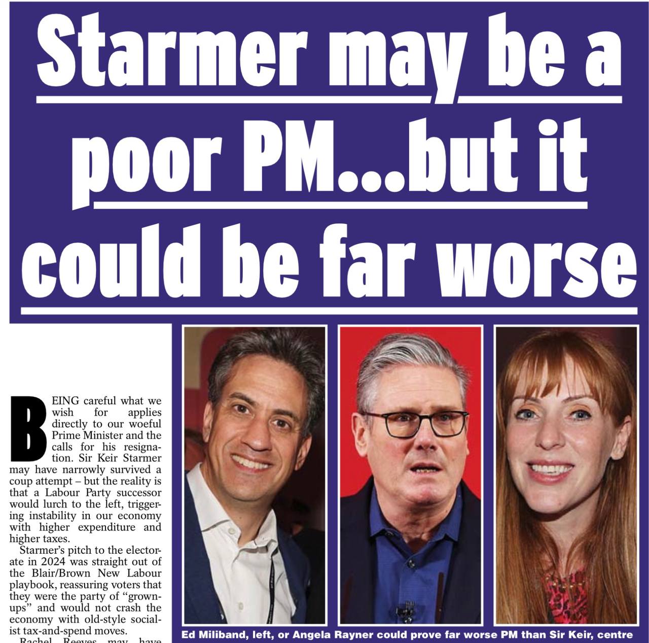 Посмотрите, как британские газеты сегодня все под одну копирку сегодня строчат. Это Daily Express: «Стармер, возможно, плохой премьер-министр… но может быть гораздо хуже». И теперь сравните с тем, что сегодня The Sun писала! Буквально слово в слово!