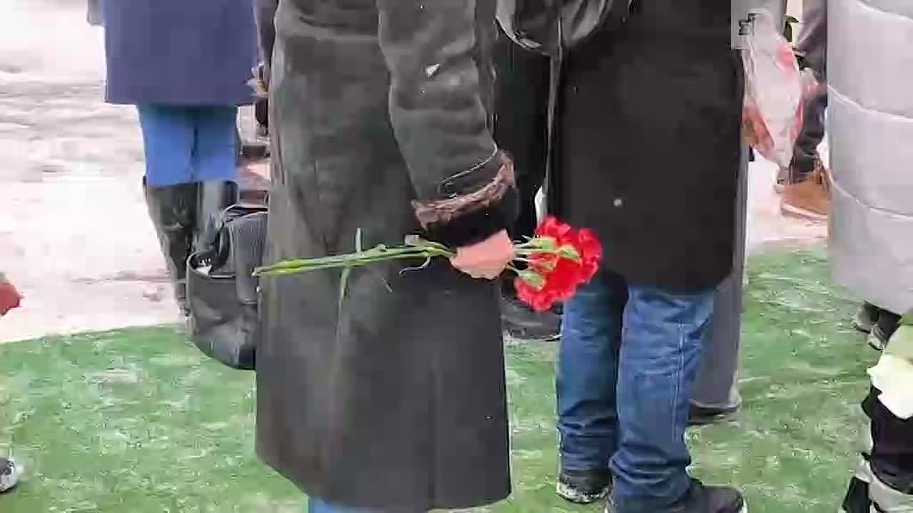 Люди принесли цветы и игрушки, многие плачут. На месте дежурят Росгвардия и полиция.
