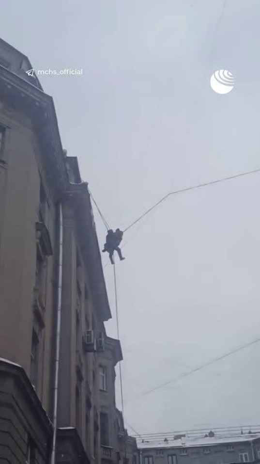 Дворник сорвался с крыши и повис на проводах в Петербурге.
