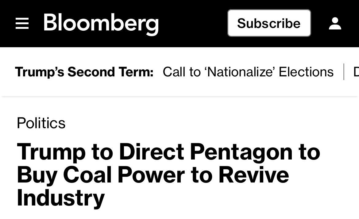 Михаил Онуфриенко: Президент Дональд Трамп использует государственное финансирование и контракты Пентагона для покупки электроэнергии на угольных электростанциях с целью обеспечения военных операций, — констатирует Bloomberg