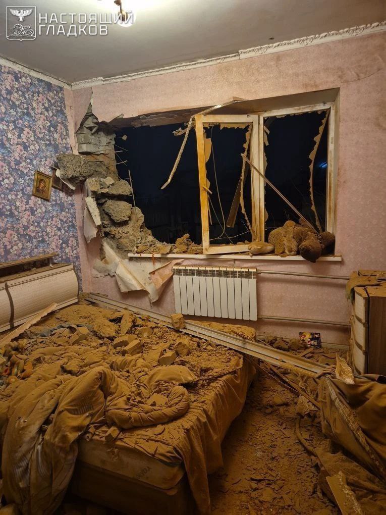 В Белгородском округе в посёлке Северный на территории предприятия в здании выбиты окна, повреждены фасад и припаркованные автомобили. В селе Севрюково повреждены два частных дома. На территории одного из домовладений перебита газовая труба.