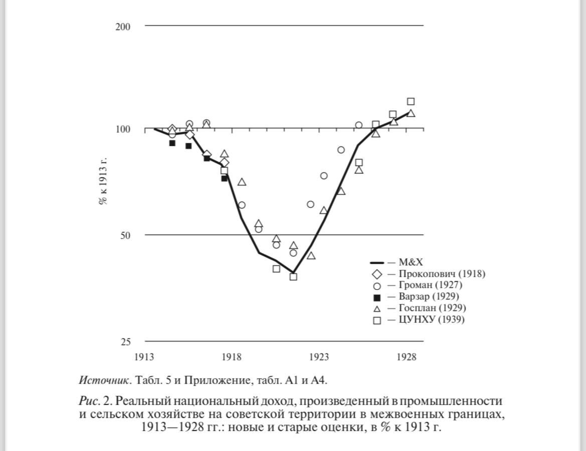 Благоволите посмотреть на график реального национального дохода для территорий в границах будущей СССР, составленной Маркевичем и Харрисоном.