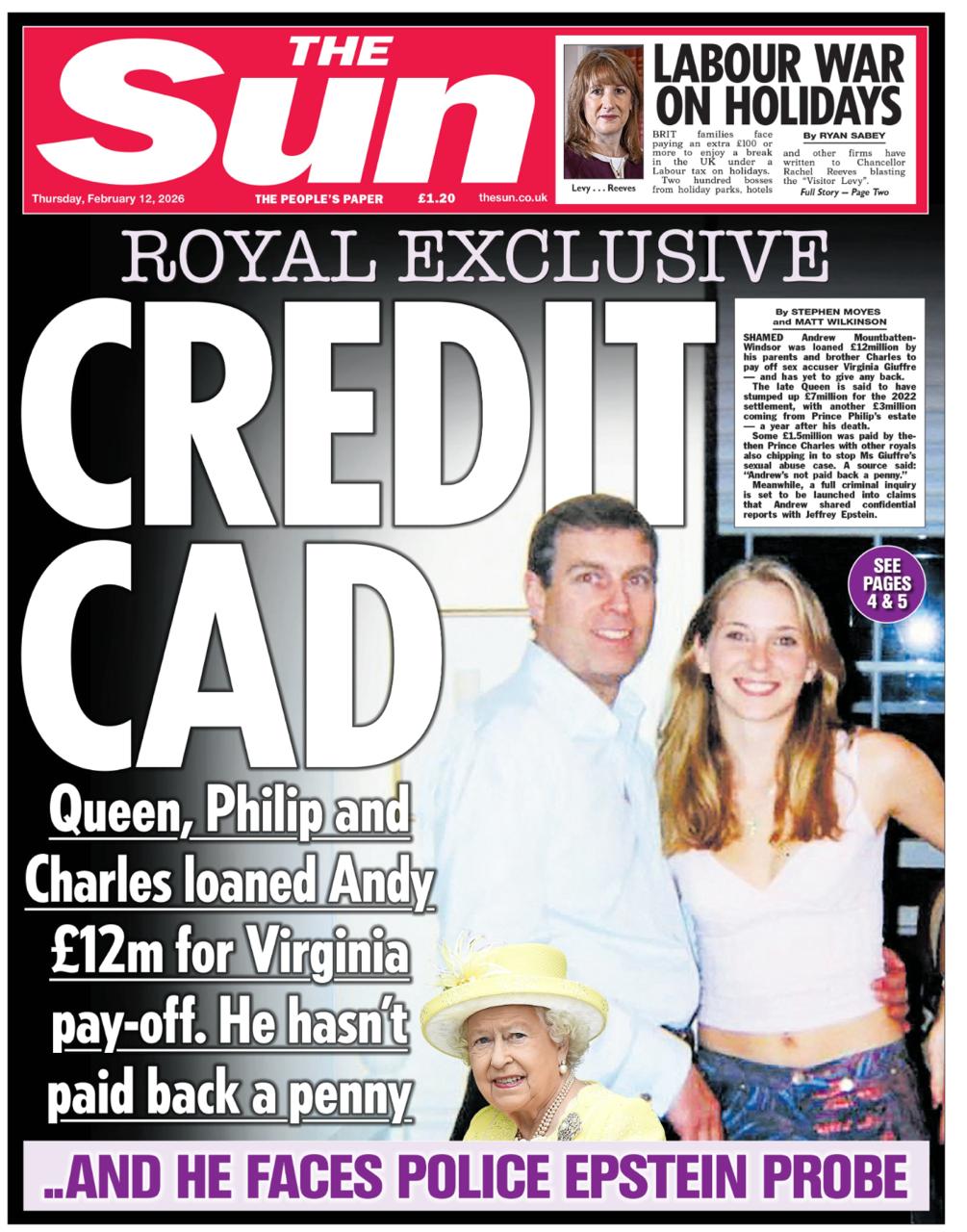 Владимир Корнилов: Самая тиражная газета Британии The Sun выяснила, что британский принц-извращенец Эндрю в 2022 году выплатил 12 млн фунтов жертве своих извращений Вирджинии Джуффре из денег, которые ему дали «взаймы» его...