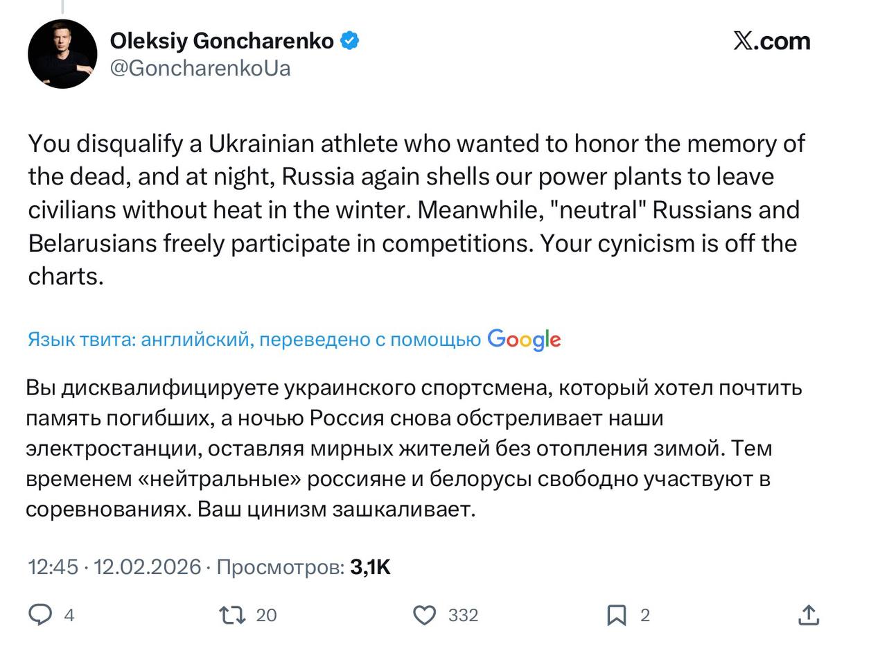Юлия Витязева: Тем временем, хутор и ему сочувствующие пошли в атаку на МОК из-за дисквалификации их упоротого дебила