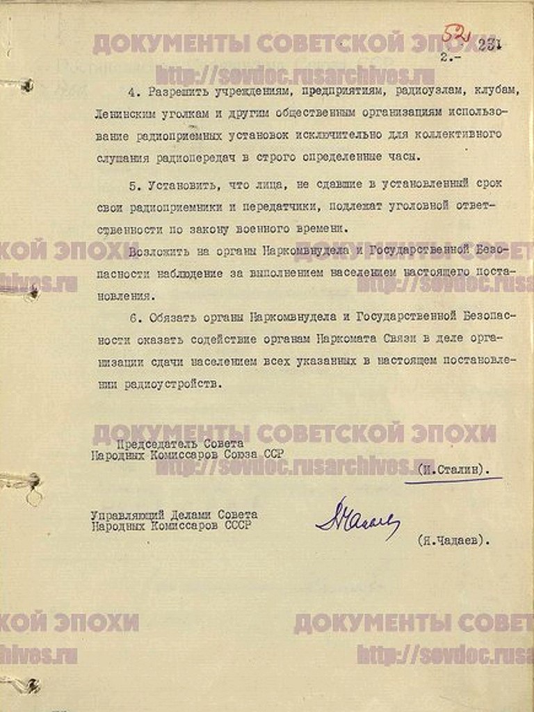 Крестьянин Егоров предположил, что всеми виной враги народа прокравшиеся в СНК, которые скрывают от Сталина правду о том, что принимаются вредительские решения об изъятии радиоприемников.