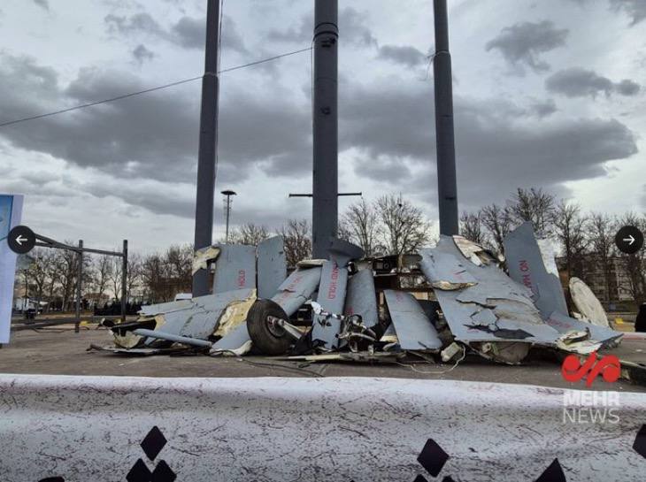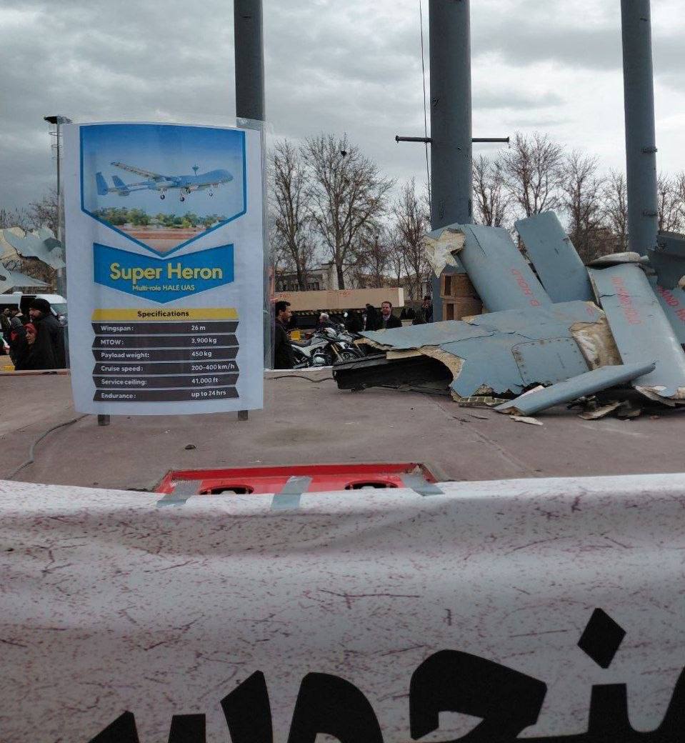 Куча обломков израильских БПЛА Super Heron выставленная в центре Тегерана
