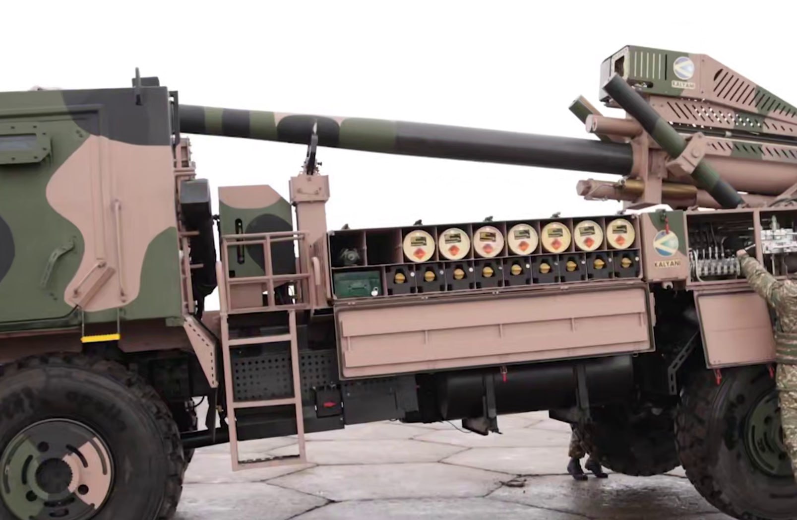 Pinaka — РСЗО калибра 214 мм, дальность до 75 км для управляемых снарядов.