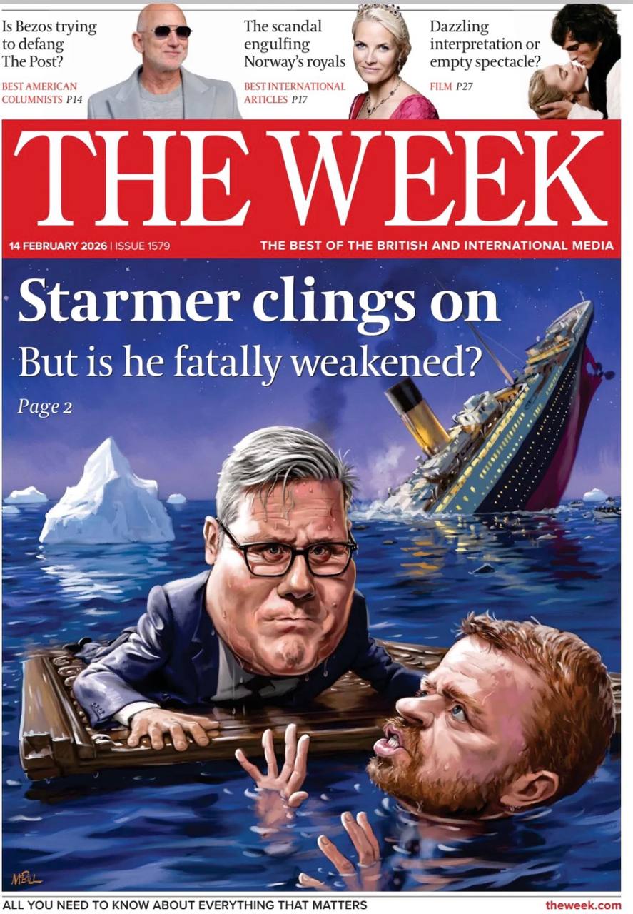 Обложка свежего выпуска британского еженедельника The Week. Как видите, журнал полагает, что «Титаник» Стармера уже затонул. Но сам он еще пока цепляется за обломки. Все равно ведь не выплывет.