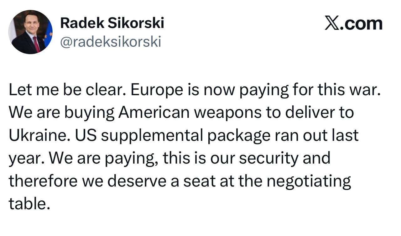 Кто платит, тот и заказывает музыку. Но если быть честными до конца, то следует открыто заявить, что в этих переговорах Европа должна присутствовать не вместе, а вместо Украины. Ведь именно она сейчас - главный интересант продолжения этой войны.