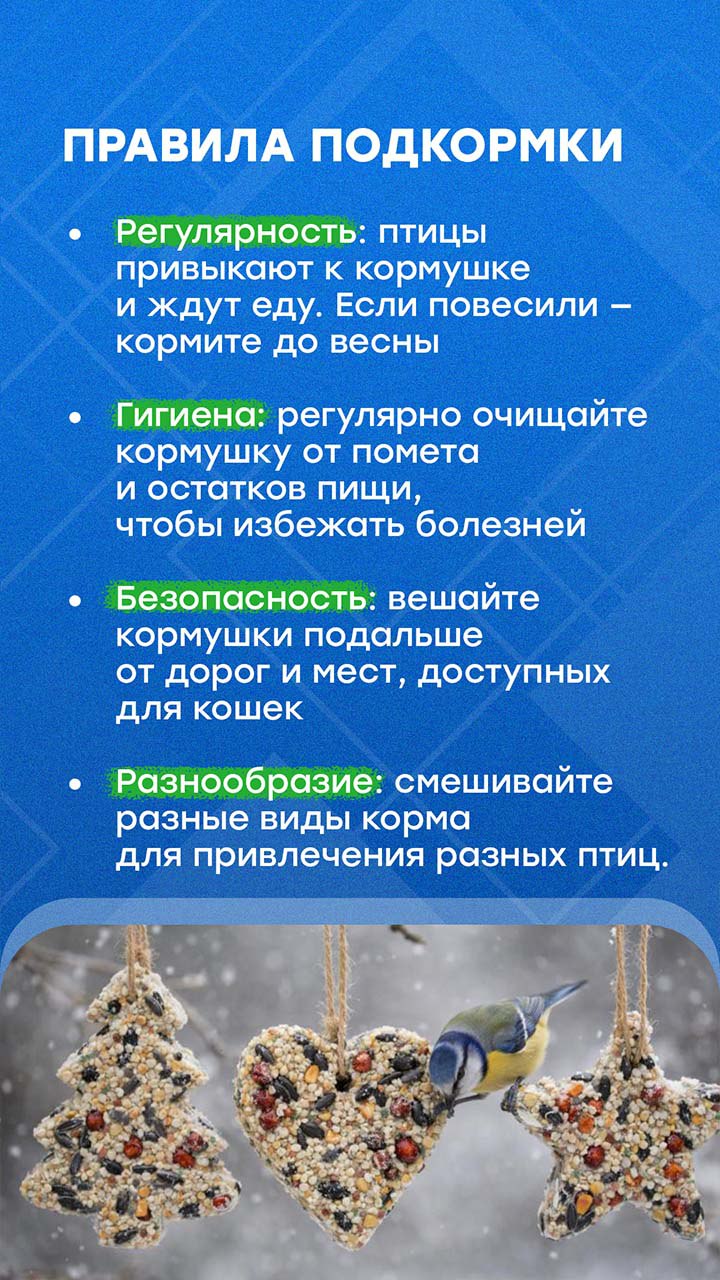 Зимой многие любят подкармливать птиц. Но не все знают, что можно давать пернатым, а что – нет. Рассказываем, как правильно заботиться о крылатых, не причиняя им вреда, в наших карточках.