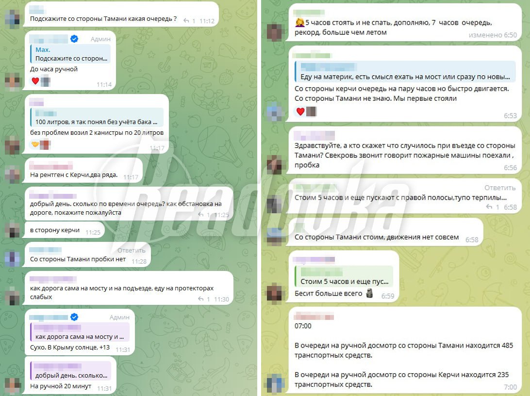Причиной задержек стало временное перекрытие Крымского моста из-за воздушной тревоги на фоне атаки БПЛА на Краснодарский край. Движение автомобилей по мосту также временно перекрывали — утром очередь в обе стороны достигала 700 машин, ожидание составляло 5 часов. Сейчас затруднений в проезде к пунктам досмотра нет.