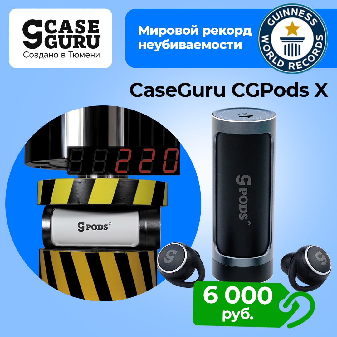Тюменские CaseGuru CGPods Sport – САМЫЕ универсальные наушники для ушей любой формы и любого размера. Благодаря 2 видам крепления – силиконовые распорки + заушные дужки – подходят для 98 различных типов ушей. РЕКОРДНАЯ универсальность!