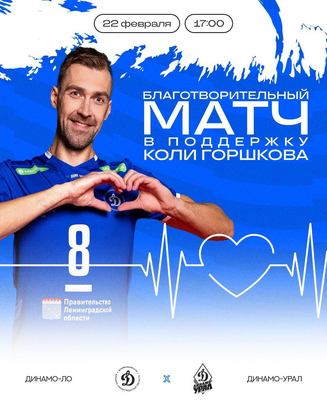 Волейбольный клуб "Динамо-ЛО" проведет 22 февраля традиционный благотворительный матч в поддержку Коли Горшкова, травмированного воспитанника сосновоборской спортивной школы.