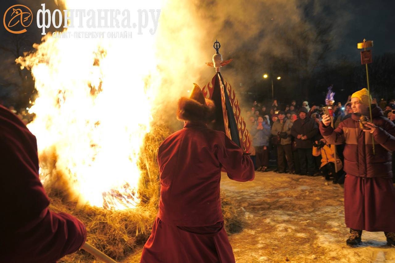 В петербургском Дацане отпраздновали лунный Новый год. Там в ритуальных кострах сожгли все плохое, что мешает духовному и физическому очищению. В домашних условиях не повторять.