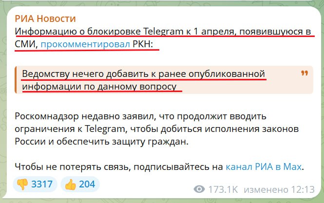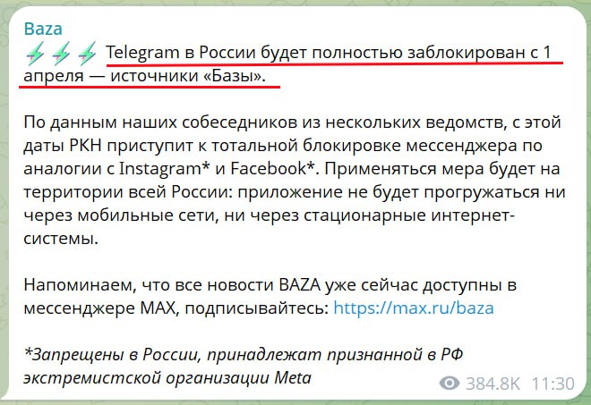 А потому с учетом ответа РКН, который не опроверг данной информации, я бы на месте российских телеграммеров готовился к худшему для них варианту развития событий.