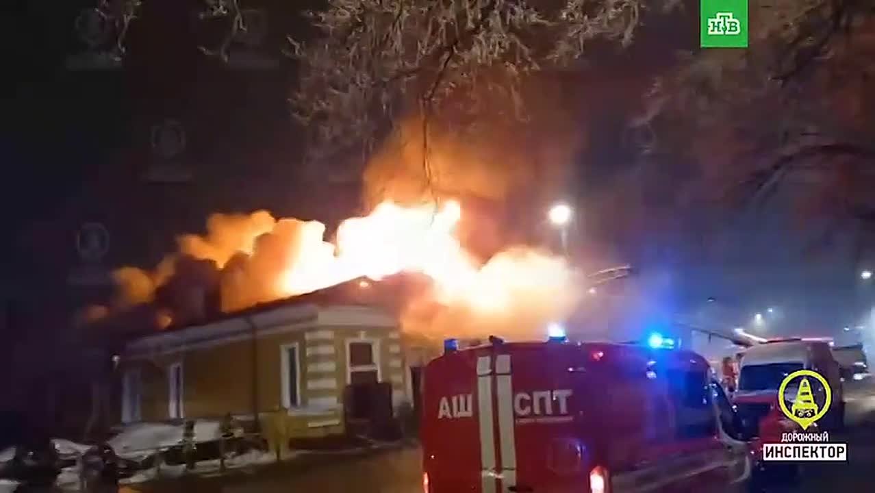 На Васильевском острове проливают конструкции трехэтажного исторического здания. Дом загорелся минувшей ночью на Уральской улице, 8.