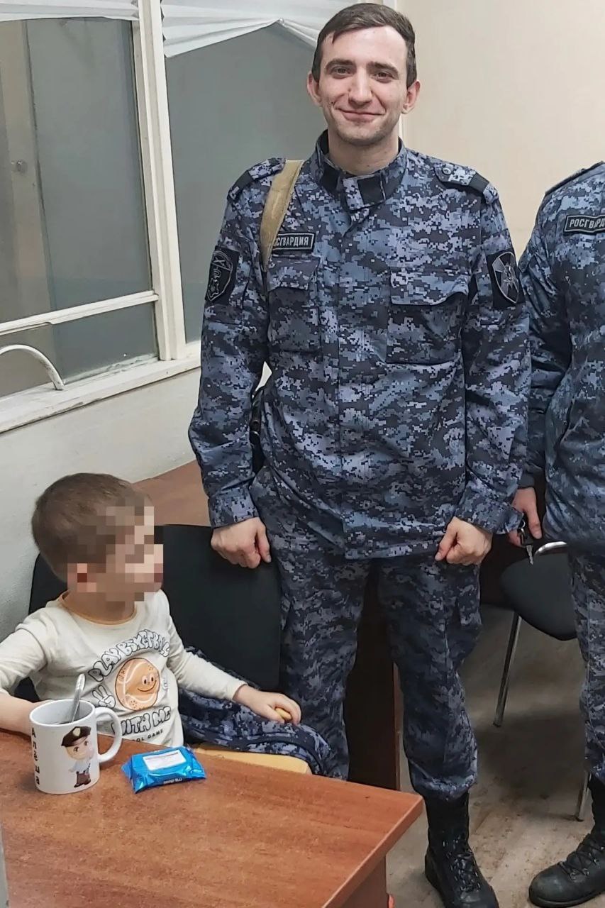Сотрудники Росгвардии укутали ребенка в куртку и посадили в автомобиль. Мальчик не мог объяснить, где он живет и кто его родители — его увезли в отдел полиции, где угостили чаем.