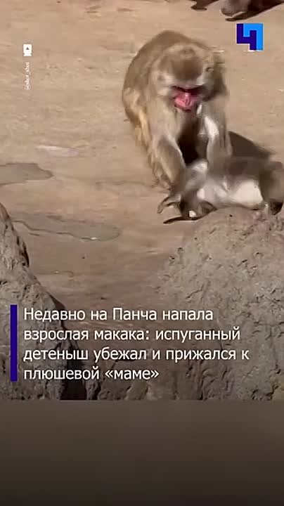 Недавно в вольере произошел тревожный эпизод: взрослая макака напала на Панча, и испуганный малыш убежал искать защиту у своей плюшевой «мамы». Видео быстро разошлось в соцсетях и привлекло в зоопарк тысячи посетителей.