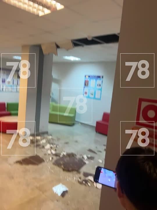 В Мурино в школе из-за протечки в вентиляции обрушился навесной потолок