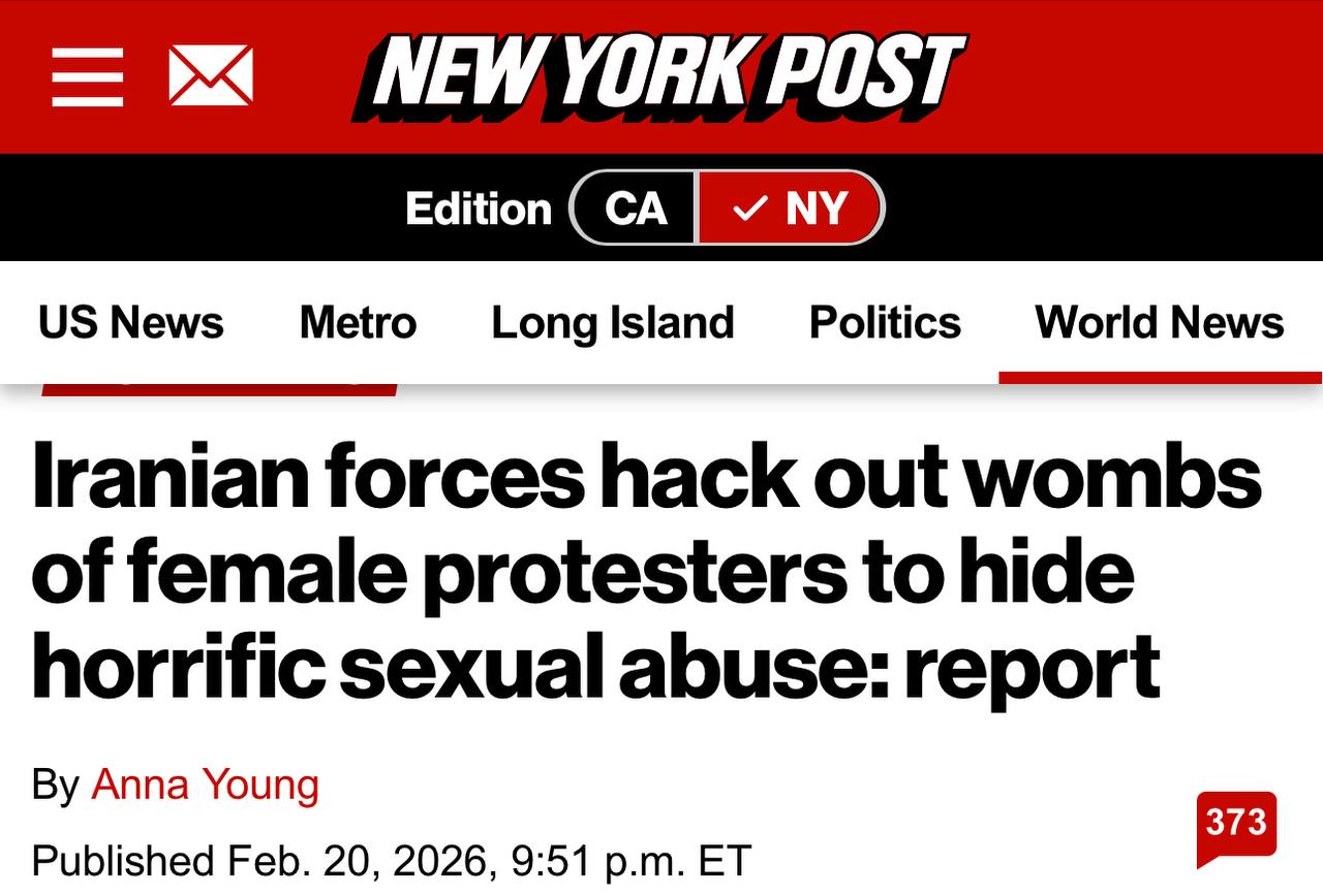 NYP: «Согласно шокирующему новому докладу, иранские полицейские совершают групповые изнасилования в отношении заключенных женщин-протестующих, а затем, чтобы скрыть ужасные пытки, удаляют им матки, после чего отправляют их безжизненные тела домой к семьям».